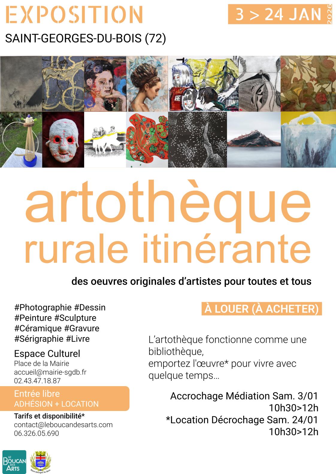 Tous les six mois, l’association Artothèque, avec laquelle la commune de Saint Georges du Bois a un partenariat, propose des œuvres d’arts qui, après leur exposition à l’espace culturel, peuvent être achetées ou louées.