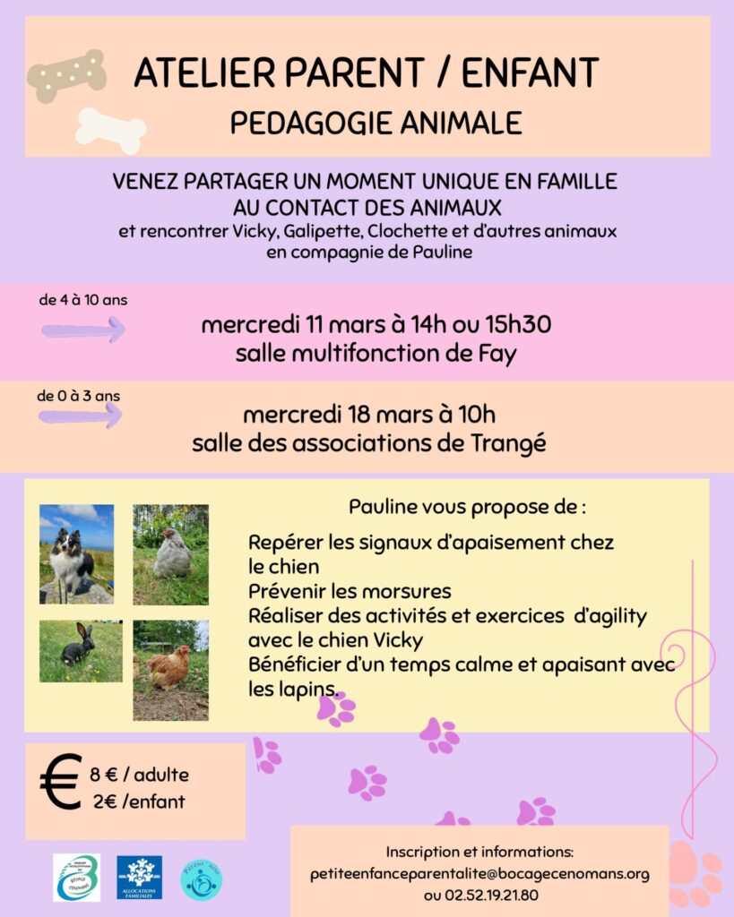 Le SIVOM du Bocage Cénomans vous invite à partager un moment convivial parent-enfant autour des animaux 🐶🐰🐔.