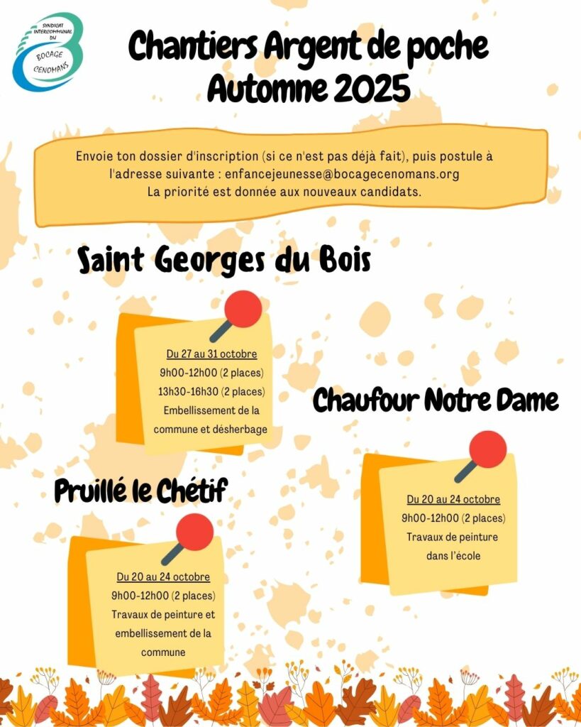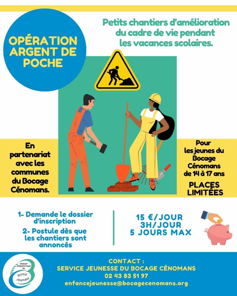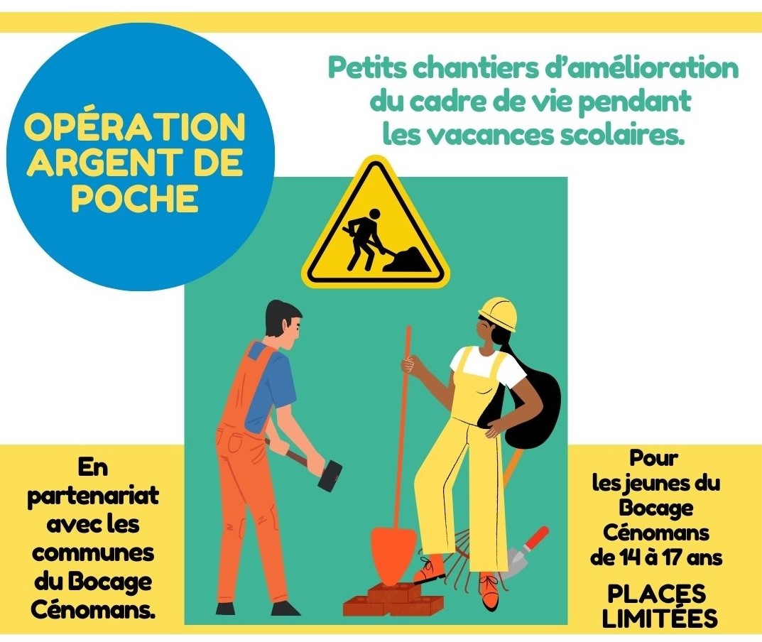 Tu habites sur les communes du Bocage Cénomans, tu as entre 14 et 17 ans et tu souhaites participer au dispositif Chantier Argent de poche :