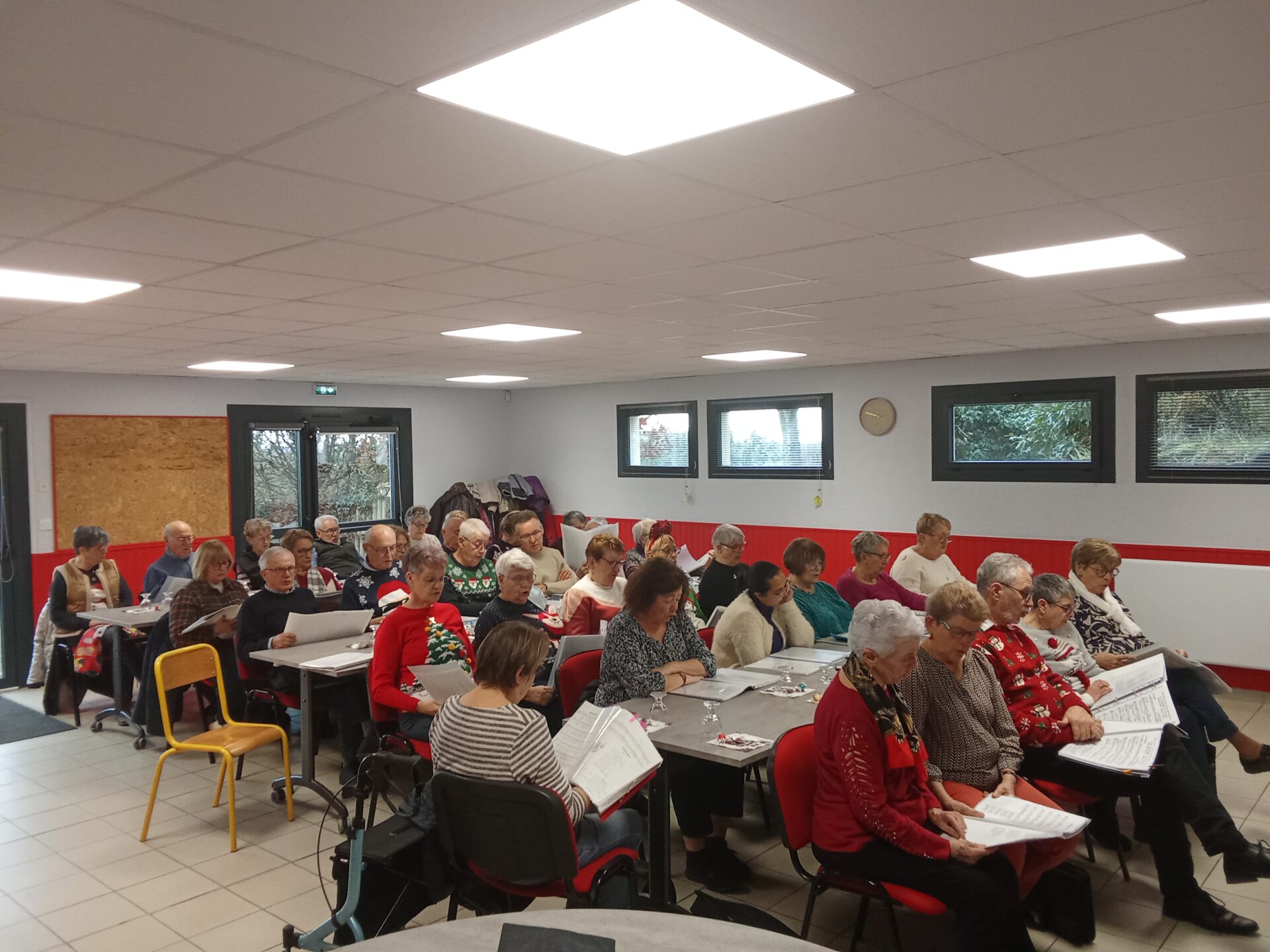 C’était ce lundi 15 décembre, que la quarantaine de membres du groupe chantant de la commune avaient décidé de troquer leur répétition hebdomadaire, à l’annexe culturel de la mairie, par un moment plus convivial et festif autour d’une traditionnelle bûche de Noël à laquelle était convié quelques élus ; ce fut l’occasion pour tous, dans la joie et la bonne humeur de revenir sur les activités de l’année écoulée et les projets futurs. C’est bien sûr, sur une bonne note que chacun s’est donné rendez-vous au début de l’année prochaine pour découvrir de nouvelles partitions.