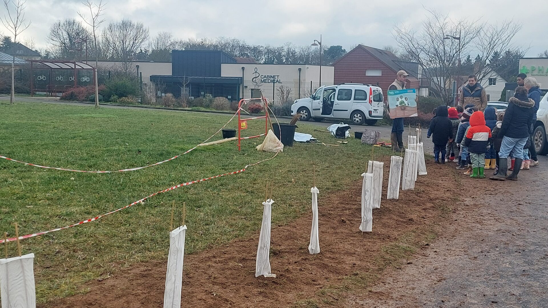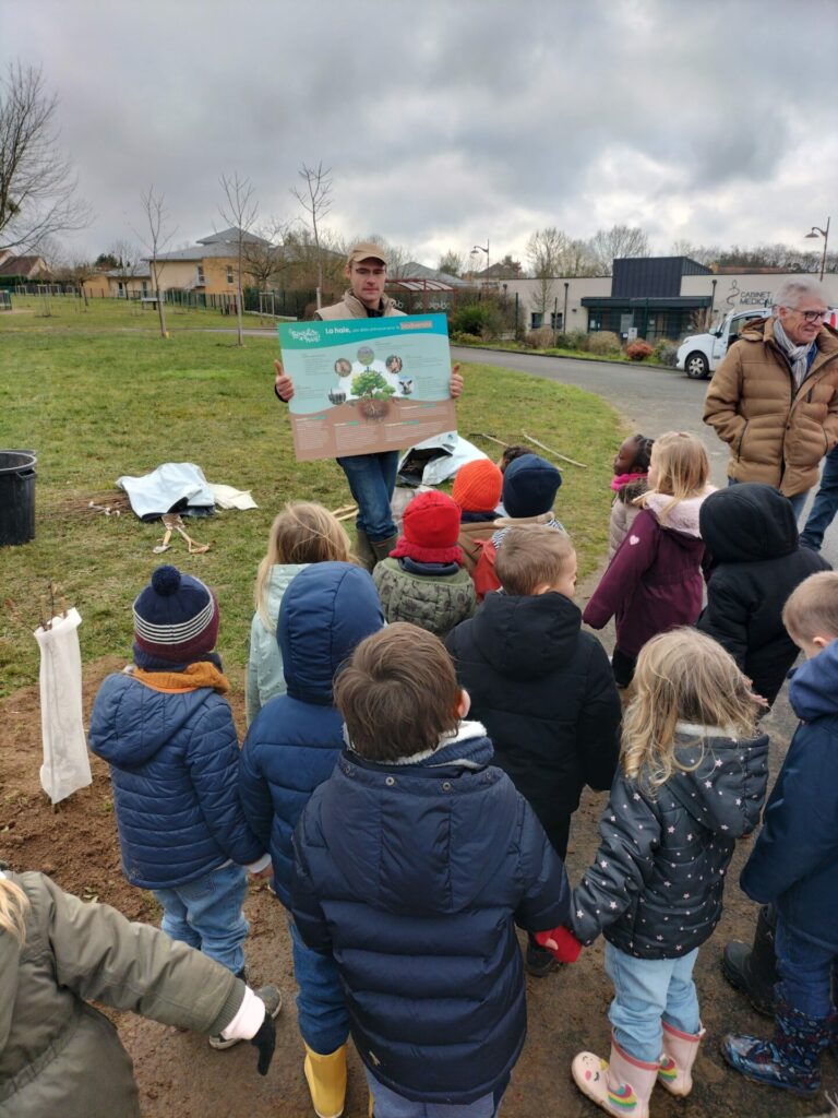 Mardi 20 janvier les élèves des classes de maternelle et de C.P ont effectué des plantations d’arbres et d’arbustes sur le plateau scolaire et en bordure du nouveau chemin de randonnée longeant le Clos des Hayes. Une centaine de plants ont été offerts à la commune par La Fédération Régionale de la Chasse des Pays de la Loire afin de créer une haie bocagère. L’animation de cette journée a été piloté par un technicien de la fédération de la chasse avec le soutien logistique de nos employés communaux et de quelques parents ; ce fut l’occasion d’expliquer aux enfants l’intérêt de ces plantations tant pour la flore que pour la faune.