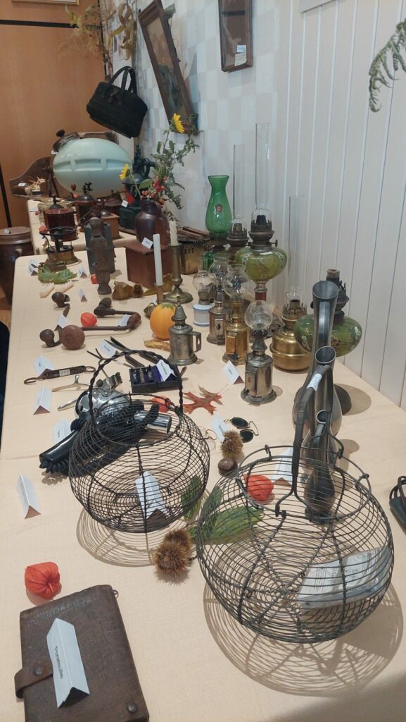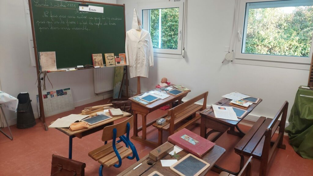 Cette superbe exposition vous permettra de découvrir la reconstitution d’une classe de primaire des années cinquante, de nombreux objets de la vie quotidienne, des costumes et poupées d’époque et aussi un ensemble de maquettes en bois à l’échelle 1/8è d’engins agricoles